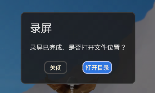 ①第一步,如果您使用了录像功能,在录像停止时会自动弹出视频存放的路径;