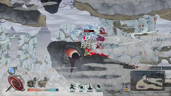 受日本浮世绘风格的启发,GetsuFumaDen的游戏画面既唯美又恐怖。