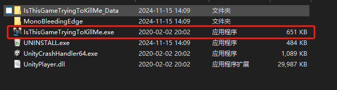 1、解压本站下载的压缩包,双击“IsThisGameTryingToKillMe.exe”运行游戏