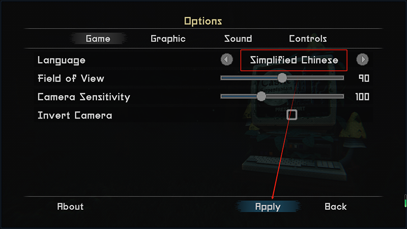 4、选择“Simplified Chinese”(简体中文),点击“Apply”,即可设置成中文