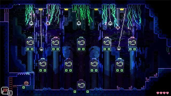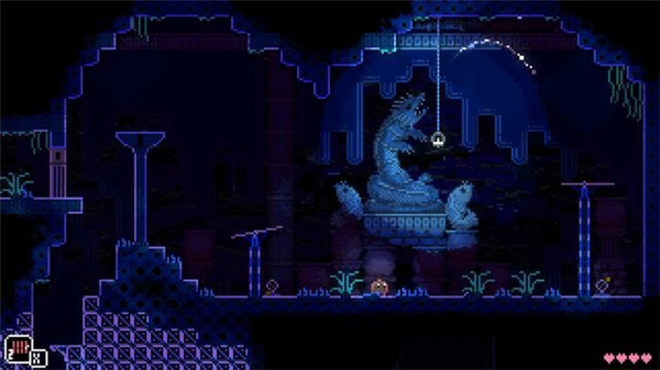 动物井(ANIMAL WELL)是一款像素解谜游戏,以探索、解谜、平台和收集为主要玩法,玩家需要探索一个密集、互相连接的迷宫,逐渐发现隐藏在其中的秘密。玩家在探索迷宫时需要与各种环境互动,捡起地上的物体并组合起来,穿过各种走廊和房间,点亮蜡烛以打开通往新区域的通道。
