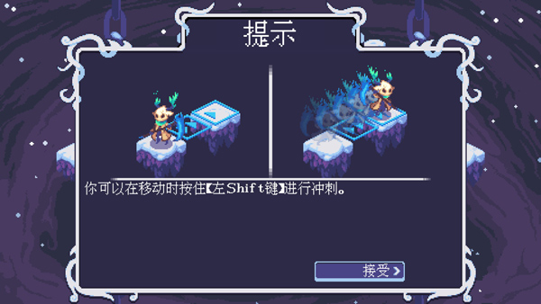 3、根据提示,按左shift进行冲刺