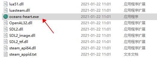 2、打开游戏目录,点击oceans-heart.exe即可开始游戏;