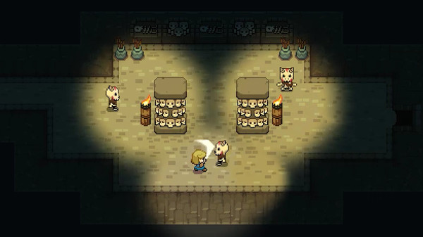 塞尔达已然可以说是一类平面RPG的玩法,在一块块大路上不断探索,解锁新的武器和功能,进入一场场紧张刺激的BOSS战,在游戏提供的大世界中展开难忘的冒险,就这一点上,本作算是有着不错的完成度,RM无法比拟的精致像素画面,木质的房屋、滴水的山洞、摇曳的麦秆,其画面表现足以令人满意,不同地图随着剧情的贯穿也有着不错的连贯性。地图中的解密环节算是中规中矩,大都是按钮、箱子等传统艺能,不过碍于游戏体量,本作的深度和地图总数仍有提升空间,虽说对于独立游戏而言倒也足够。