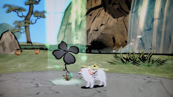 继续前进,到达神木泷樱。进入左边的洞口,修炼出新奥义后,把球推到祭坛前的水池上,瀑布上方画出太阳,习得笔神——花神——樱花能力。对着枯木是用樱花能力,花笑谷诅咒解除。