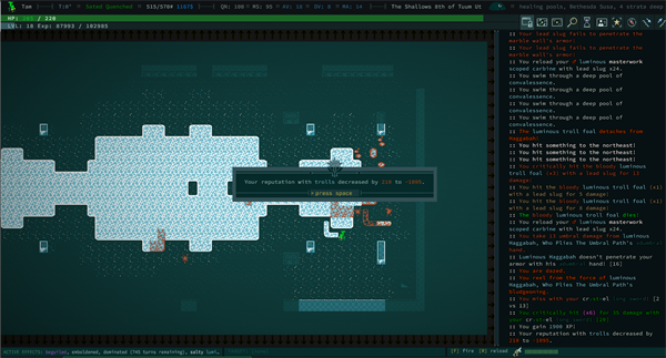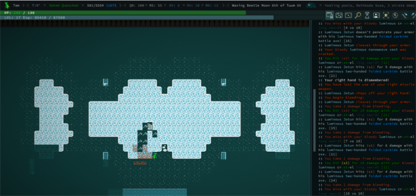 完全模拟的生物:每个怪物和 NPC 都像玩家一样完全模拟。这意味着他们有等级、技能、装备、派系忠诚度和身体部位。因此,如果你有一种突变,可以让你在灵能上控制一只蜘蛛,你就可以像蜘蛛一样在世界上行走,结网并吃东西。