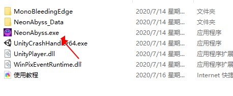 2、打开游戏目录,双击NeonAbyss.exe文件开始运行游戏;