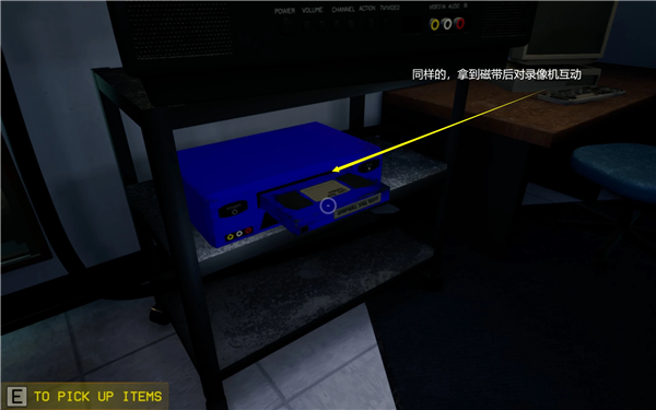 拿到磁带后,放到右边的录像机中,观看视频(可以跳过)。