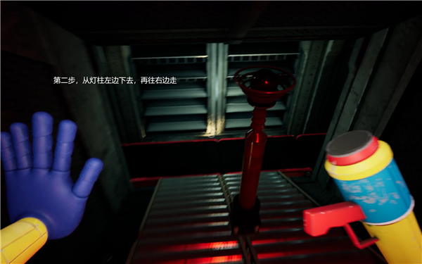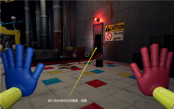 大门打开后,继续前进,之后就是追逐战。走到尽头HUGGY就回来追你,这个时候我们要回头逃跑。