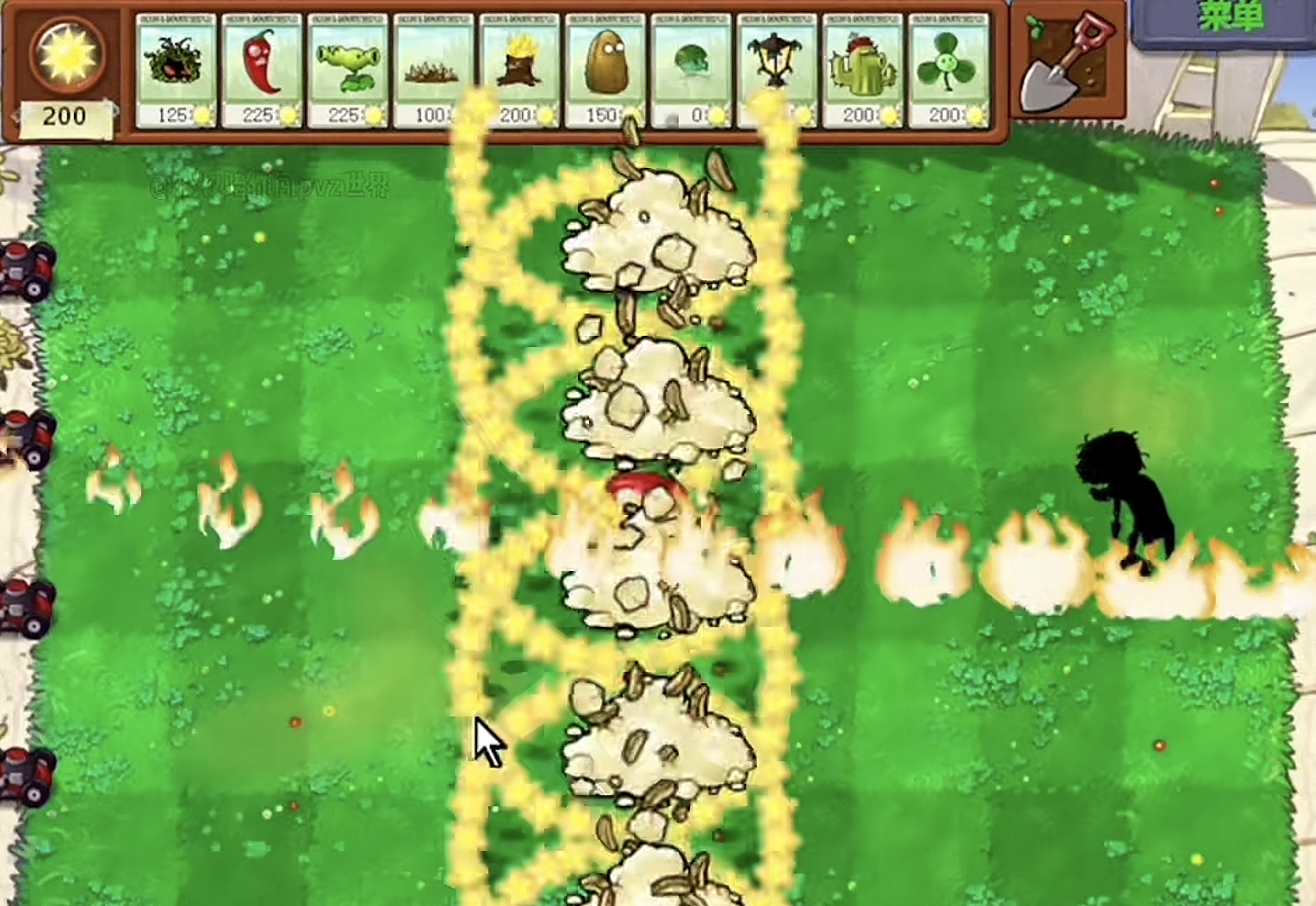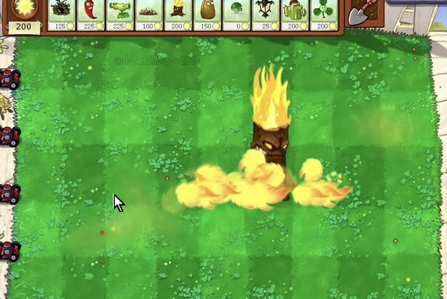 5、火炬树桩:火炬树桩会从细高和扁矮两种状态反复切换,当他变得细高时会召唤三颗火球。