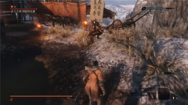 另外武士大将有霸体的下劈,所谓霸体就是可以硬顶着你攻击,无法打断的攻击,这种就需要你在看到他动作的时候判断出招式,提前收刀应对。