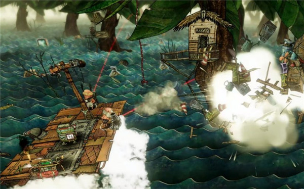 此外,还有大大小小的鳄鱼、金属鲨会浮出水面咬坏木筏,不过不用担心,玩家可以架设枪炮,把怪物轰得稀巴烂。