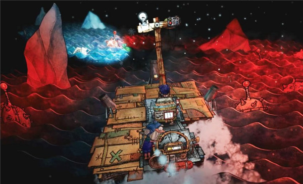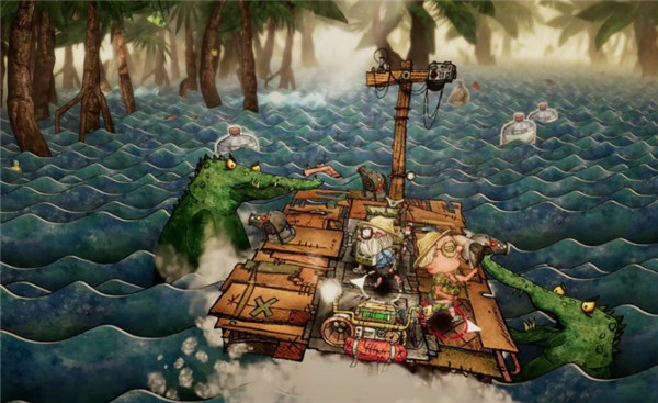 1、在主打手绘风格的世界里,世界被巨大的垃圾海啸淹没,你与好友乘坐木筏漂流,回收海洋垃圾再利用,当作引擎燃料或是拿来修补木筏,帮助资收小队航向伟大的航道。