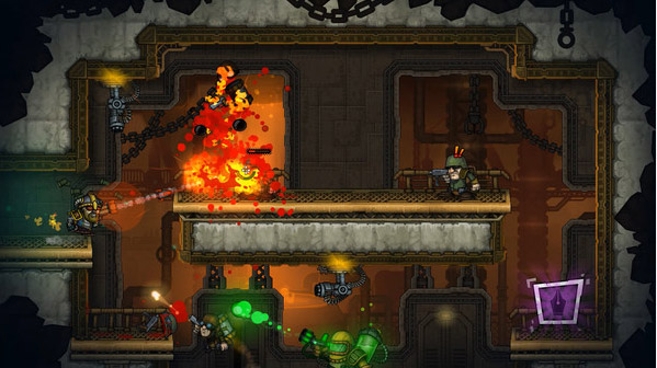 恶棍英雄(Fury Unleashed)是由Awesome Games Studio制作发行的一款背景设定为漫画书籍宇宙中的平台射击游戏。游戏以快节奏的射击和跑动为特色,程序化生成等级与各种各样的物品,让每次通关都与众不同,都是以绝对闪亮,充满现代感和高清的2D设计。游戏中你将会扮演一位“恶棍英雄”,他是来自漫画书里的英雄,在游戏中,玩家可以对他进行各种自定义和升级。恶棍英雄游戏的目标是使用你手中的枪械去击倒各种敌人并收集他们的“墨汁”,然后用这些“墨汁”来进行升级,并提升自身的属性、技能,杀死关卡最终boss。恶棍英雄游戏中需要在射击敌人的同时躲避各种投射物、陷阱和障碍物。用从击败的敌人那里获得的油墨来给你的英雄升级。动感刺激的游戏体验,像个恶棍一样去冒险以获取更大的奖励,不管何时都需要全身心投入其中,不然你会比你设想中的要死得快得多,精通你角色的技能并超越每一个敌人以获得成功!关卡和敌人都是由程序自动生成的,大量的武器装备系统,而且快节奏的战斗方式会让人振奋不已,加上各种高清的2D建模,让每一个玩家都沉浸在这个神秘而且广阔的漫画世界里。