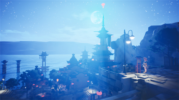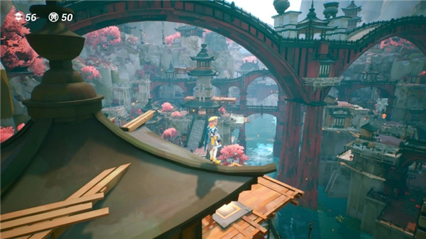 一个城镇通常有两处圣域,进入其中悠云会遇到一些以平台跳跃玩法为主的关卡挑战。城内是在重重楼阁之间跳跳乐,这里也是一样跳跳乐。