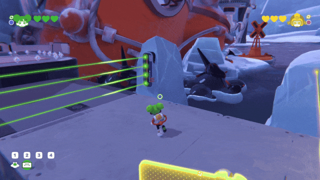 而且很难得的是《泡姆泡姆》的道具运用一点都不死板,并且很多道具在后续关卡还有进阶玩法。比如光波守卫并不只是个护盾,你可以用它来踮脚,实现更高的跳跃,特定关卡还能拿来折射光线。