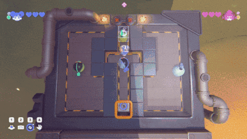 而且双人合作在这一关得到了很好的诠释,非常重要的同时又不会让你觉得设计的强行。很多地方你都需要和朋友利用相应的颜色,调整先后顺序,到达特定的位置,起到互相搭桥的方式才能通过。整个关卡玩下来,就会发现每次一开始进入迷宫都会先懵一会儿,然后慢慢摸索出通关方法,随后冲出迷宫,瞬间感觉豁然开朗,突出一个“头好痒,好像要长脑子了”的神奇正反馈。