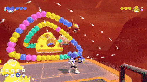 还有就是在本地联机时,游戏的分屏视角还存在一些的问题,尤其是在特定的Boss关卡。本关需要在快速移动的小飞机上攻击来回乱窜的Boss,视角忽近忽远,Boss忽上忽下,非常考验你的Fps水平,你甚至可以在这一关好好锻炼一下你的“预瞄”和“定位”。