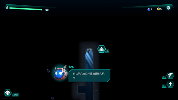 6、前往洞穴出口并按按钮进入机甲。