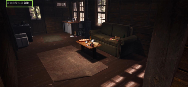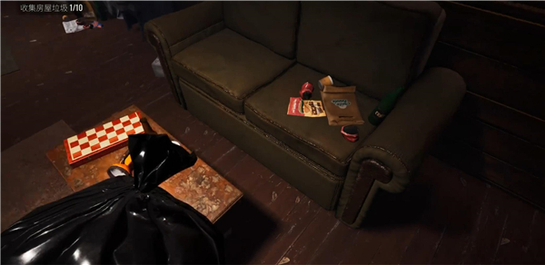 4、前往客厅、卧室、厨房收拾垃圾。