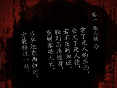 出来调查门口的椅子,得到【卷一-死人债】。