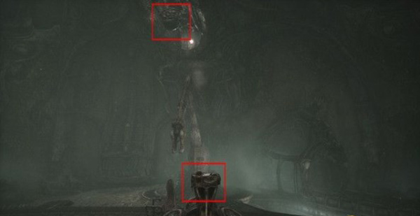 原路返回这个骨孔对面打开窗户的区域,在这里你将自动打开一处武器柜,拿到一个像是打桩枪的武器。