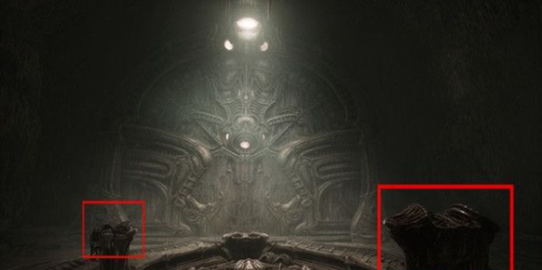 返回广场,找到这里的一个综合大门,把这只手放进左侧的设备中,然后你需要操作右侧的平台,同时激活另外一台设备。