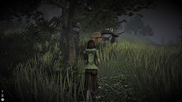 左:地图向左进发,有个很深的湖,里面还有大虫怪,再深下去不知道是什么,再往左边有预告出现的木头人架子,这个地带有一些小动物,鹿之类的,不会攻击玩家。