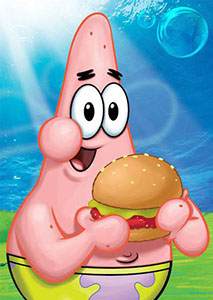 《海绵宝宝》的同名角色及主角。黄色长方形海绵,其身体构成如同清洁用海绵。生日是1986年7月14日。拥有两只左手,各四根手指。以棕色短裤、白色衬衫和红色领带为主要服装。具有不死之身,即使身体如何被破坏皆可恢复原状。虽然有正常进食,但纯滤食海水也能继续存活。体力薄弱,且所谓的哑铃其实是绒毛玩具。