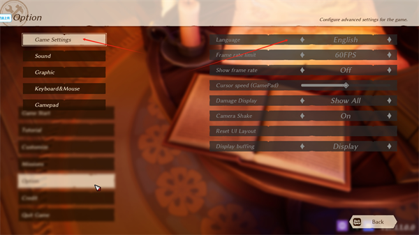 2、先点击左边的GameSettings才能选择切换语言找到简体中文。