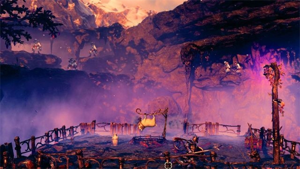 三位一体3游戏采用精美的3D画面,且角色建模和场景设计全面升级,从开阔平原到幽暗森林都充满奇幻色彩。三位一体3游戏虽然保持横版卷轴核心玩法,但其创新的多视角转换系统可大大增强了游戏的沉浸感。此外,游戏还支持单人游玩或三人联机合作,让玩家体验更具互动性的冒险旅程。