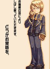担任菲奥娜管家的年轻人。严谨耿直,彬彬有礼,此外还是一位武术高手,在担任菲奥娜保镖的同时,也在各个方面支持着她。掌握多方情报,注意到拉格那与爱尔温的可疑行动,并对他们展开调查。