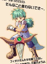 前作主人公之一。性格非常认真,却又有些无拘无束,对比他年长的女性没有什么办法。出于某种原因与皮皮洛一同来到了伊鲁巴特,最近一个月一直寄住在菲奥娜的宅邸中。喜欢家务劳动与冷笑话,不过冷笑话似乎不怎么受欢迎。
