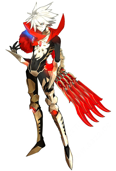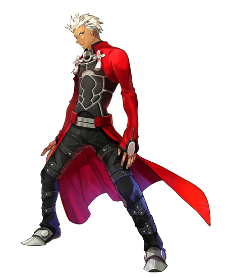 身穿红色外套的链铁之英灵。虽然是个喜欢挖苦别人个性冷酷的家伙,事实上非常会照顾人。虽身为弓兵,也很擅长近身战。虽然并非是强力的英灵,但却是个什么都能做的万事通。
