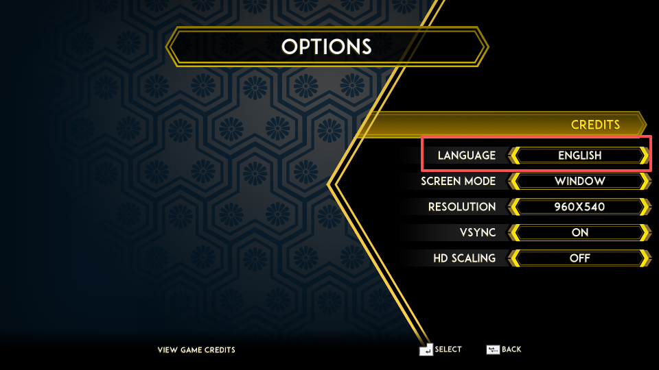 2、随后选择“LANGUAGE”选项,可以通过方向键左右切换游戏语言。