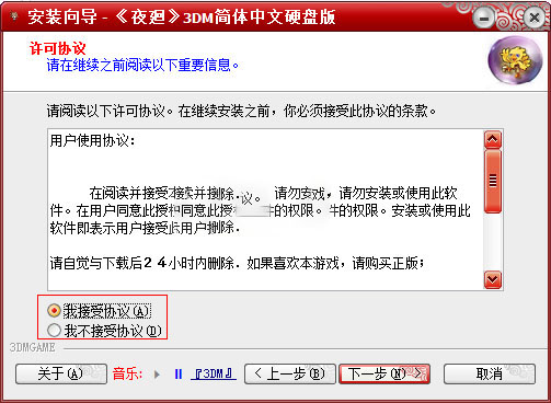 1、启动安装程序之后,这里同意游戏协议,点击“下一步”进入下一个安装页面。