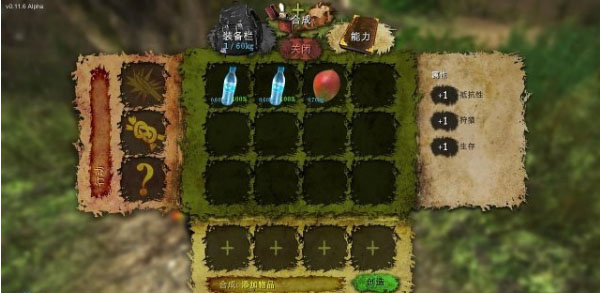 求生指南-生存技巧及物品合成表荒岛上可不只有我们小强在到处晃悠,各种野生动物也有自己的地盘。初期最好别惹他们,尤其是碰到熊的时候。鳄鱼还要勉强好对付一点,有一把小刀就能应付。不过还是那句话,一开始,躲得过就别打,弄个流血疾病什么的就麻烦了。目前可以合成的东西还不多,也没有一个列表,生存游戏嘛,这些东西都是需要自己摸索的,点击物品按加入就能放入下方的合成材料栏。点击左侧的刀、绳子等工具,可以将工具放入进行加工,例如放入树叶、放入刀,然后点击制作。材料消失了,再看看物品栏——绷带制作出来了。绷带可以解决流血的问题,流血如果不包扎的话,害死你是迟早的事,入夜后,各种威胁和麻烦就更多了。如果夜里在下一场雨,乖乖,寒冷、疾病这些负面状态一下子就出来了。夜太黑,太危险,这个时候,你就需要尽快造出一个火把了,布料、木棍、燃油、绳子,空瓶子才能接水,再点个火、弄个材火堆什么的,长夜就好过些了。玩家有时候会遇到无法开启的门,有时需要钥匙,有时就需要大型的工具,这类屋子里通常有些好东西,如果暂时不能打开,最好记住位置。有了合适的工具后,把工具放置到快捷栏然后拿出,这时点击门或者其他物体就会有一个圆形准星式的图标,左键点击准星位置就会挥动工具打击。使用这种方式也可以拿起武器进行战斗,你战斗的越多、在各种负面状态下治愈的越多、坚持的越久,你的各种属性就会相应的提升,打造小强就是要一步步把自己逼入绝境,然后一次次逃出生天。