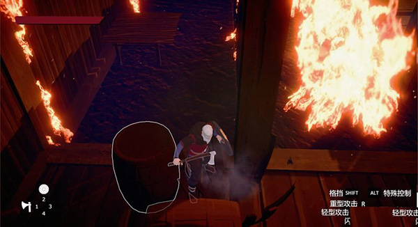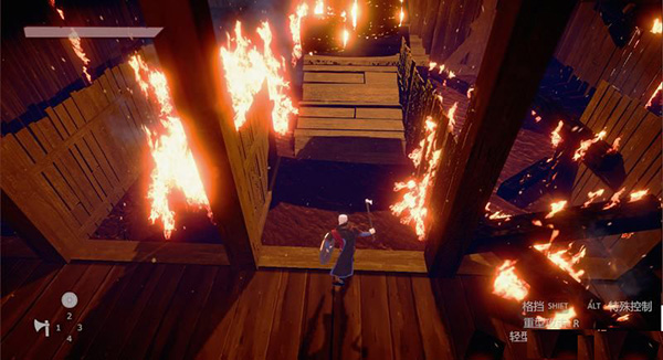 拿到斧头和盾牌后,可以打碎掉下方的桶继续前行。