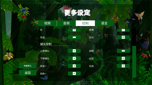 马拉维拉岛的奇禽异兽中文版是由Whitethorn Digital发行的一款以探索和收集为主题的3D冒险游戏,游戏中,玩家将化身成年轻的野生动物摄影师玛丽娜·蒙特斯,走进马拉维拉岛神奇的生态系统,邂逅各种非同寻常的生物,了解生物的习性,通过摄影记录它们的魅力与风采,休闲放松地探索这个魔法世界。玩家要与它们耐心、友好地互动,才能了解其独特的习性,与桀骜不驯的獭鳄嬉戏,帮助坠入爱河的禽猴求爱,寻找香蕉鸟最爱的藏身之地,走进马拉维拉岛的奇禽异兽的世界,随时都能以特别而友好的方式与岛上的生物互动。除此之外,游戏中还收录50多种大大小小的特别生物可以让你进行互动、拍照,自由探索三个不同的生态区域,体验生物之间的互动以及生态,并解开各种谜题去了解这个地方隐藏的秘密,有兴趣的小伙伴即可下载体验! 马拉维拉岛的魔法结界日渐薄弱,只有人类再次相信世间存在魔幻之物,海岛的结界才不会消失。化身初出茅庐的野生动物摄影师玛丽娜·蒙特斯,带上爷爷的日记和相机,踏上马拉维拉岛,跋山涉水,解开谜题,发现各种动物与植物,通过相机捕捉奇禽异兽的风采。 你要与它们耐心、友好地互动,才能了解其独特的习性!与桀骜不驯的獭鳄嬉戏,帮助坠入爱河的禽猴求爱,寻找香蕉鸟最爱的藏身之地。走进马拉维拉岛的奇禽异兽的世界,随时都能以特别而友好的方式与岛上的生物互动! 1、捕捉你与这些生物的美妙瞬间,向世界展示马拉维拉岛的神奇 2、大大小小50多种特别的生物可以互动、拍照 3、三个生态区域各不相同,每个区域均有特别的物种,等你来探索 4、生态环境壮丽秀美,无限美景等你记录 5、谜题重重,需要与生物互动、配合才能解开 1、玩家将扮演一位年轻美丽的野生动物摄影师 2、你将前往神秘的马拉维拉岛探索冒险 3、在这里你会邂逅大量非同寻常的生物 4、通过了解它们的习性、使用相机记录它们的点点滴滴来了解它们 5、让人类再次对魔幻植物所信服,从而保护岛上的结界 1、下载本站提供的全部压缩包,然后解压到非中文路径下 2、双击Beasts of Maravilla Island.exe文件,就可以启动游戏了 3、打开游戏,点击options 4、再点击Language下的简体中文即可 5、玩家还可以根据自己的需求进行设置 6、设置完成,玩家可以点击红色选框下的开始进行游戏 8、以上就是马拉维拉岛的奇禽异兽中文版安装教程,有兴趣的小伙伴快来体验吧 一、游戏控制 前进——W 后退——S 左——A 右——D 互动——空格 蹲下——Shift 吹口哨——Q 相机——E 想蒲——F 日记——R 二、镜头控制 上移镜头——↑ 下移镜头——↓ 自拍<——← 自拍>——→ 拍照——空格 拉近——X 拉远——Z 一、最低配置 操作系统:Windows 7/8/10 CPU:英特尔酷睿2四核Q6600 @ 2.4 GHz、AMD FX 8120 @ 3.1 GHz 内存:4 GB RAM 显卡:NVIDIA GT 630 / 650m、 AMD镭龙HD6570或同等性能的显卡 存储空间:需要 4 GB 可用空间 二、推荐配置 操作系统:Windows 7/8/10 CPU:英特尔i7 920 @ 2.7 GHz、AMD奕龙II 945 @ 3.0 GHz 内存:16 GB RAM 显卡:NVIDIA GTX 660、镭龙R9-270 存储空间:需要 4 GB 可用空间