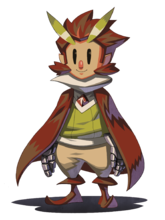 他和其他这个年纪的猫头鹰人一样,会从师傅那里学习飞行之类的生存本领(在猫头鹰社会中,猫头鹰有斗篷一样的翅膀,人们用来飞行的斗篷代代相传)。可是由于他天资愚笨,经常惹师傅生气;再加上他还是个不会说话的哑巴,平日里还会受到其他猫头鹰人的歧视、欺负、侮辱。他很努力地学习飞行的技艺,并想尽办法讨师傅和其他人的欢心,可是运气也总是在和他做对,几乎每一次努力最后都会弄巧成拙。游戏前期的新手教程,玩家需要掌握飞行技巧(Otus能够随心所欲的飞行,飞行时还可以抓住物体或人)、执行动作(翻滚、攻击),主角本身除了近战攻击之外,并没有其他的战斗技巧,而是通过同伴来完成的。《猫头鹰男孩》属于像素游戏,角色是很小的点阵图造型,但玩家完全可以感受到他们的情绪变化:主角Otus虽然不能说话(哑巴设定),但他的一举一动却能够活灵活现的表现出来,玩家可以通过他眉眼的细微动作迅速的捕捉到“沮丧”“喜悦”等情绪信号,其他角色也一样。玩家在场景中有时需要通过玩家角色的表情、动作反应来判断场景反馈(如“此处物品无法抓取”、“此路无法通过”等)。主人公Otus拥有生命值的设定,除玩家的敌人外游戏中其他角色(伙伴、NPC)无此设定,Otus的生命值可以通过使用生命值恢复道具或者泡温泉恢复。伙伴游戏中因主角Otus战斗能力有限,所以玩家需要伙伴来提供额外的战斗力。在游戏后期,能力各异的其他辅助角色也会出现,伙伴都拥有各自的技能和故事,玩家需要选择合适的角色(根据不同伙伴的武器特性进行攻击)与Otus配对解决场景难题或者应对战斗。下表是伙伴介绍:GeddyGeddy是Otus在猫头鹰村庄的一个很要好的朋友,Geddy在村庄里是负责炮台(防御工程)的维护工作人员。不能说话的Otus被村庄里其他的捣蛋鬼欺负了,而Otus的好朋友工程师Geddy及时赶到,帮助Otus解围,Geddy担心Otus再被人欺负,他提议自己可以帮助Otus一起执行岗哨任务。Geddy是玩家获得的第一个伙伴。最初的Geddy就能够给予主角远程攻击的能力,只要当Otus抓住Geddy,就相当于化身弹幕游戏的主角,他会用手枪帮Otus打怪。AlphonseAlphonse是Otus协同Geddy在前往猫头鹰神庙遇见的第二个伙伴。他们遇见时Alphonse和其同伙二人正准备搭乘天空海盗船逃走,但他们都认为这艘船(已损坏)无法载着俩人同时逃离神庙,而当他们正准备投掷硬币决定谁乘船离开时,海盗发现了Otus二人,战斗一触即发。打败Alphonse后,Alphonse说明他和同伙一直有分歧,自己的理念跟瘦海盗不合,而他也没有继续跟Otus敌对的意愿,随后便归顺Otus,成为Otus的第二个伙伴物品道具