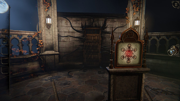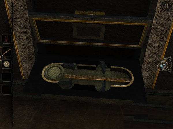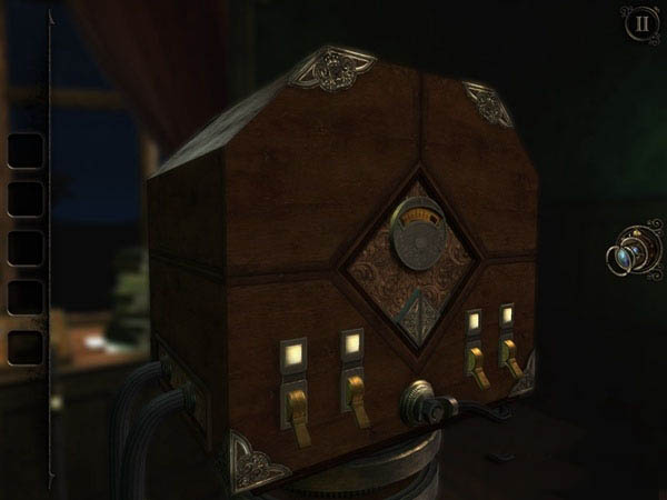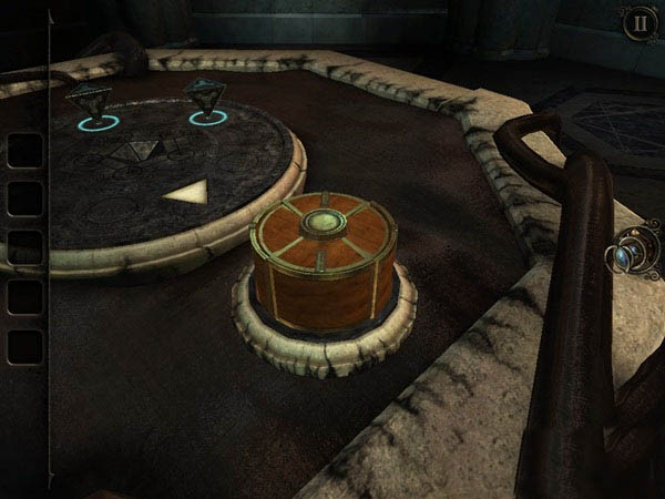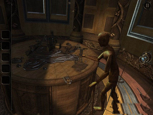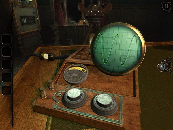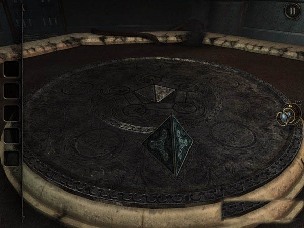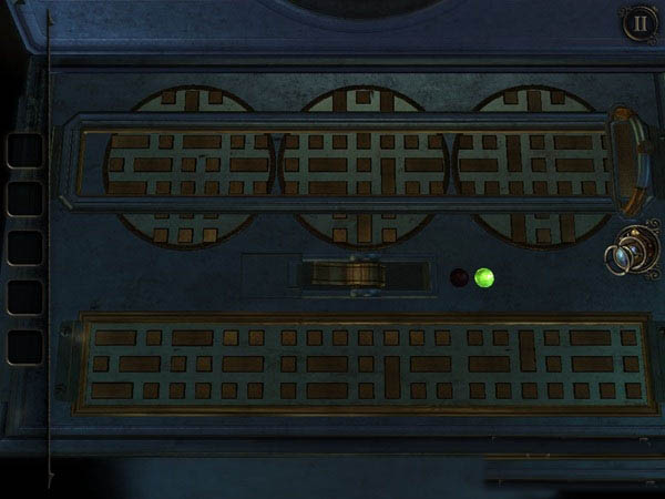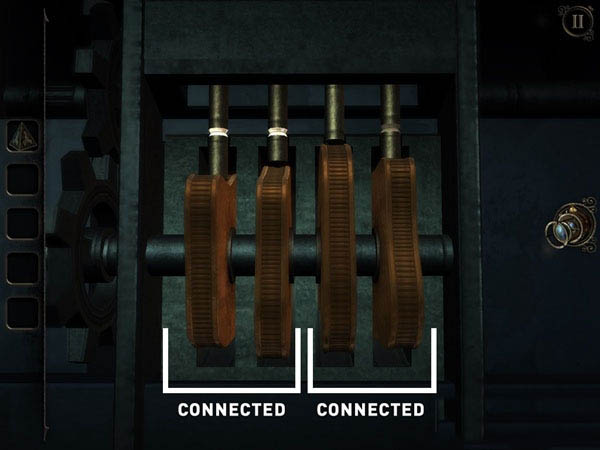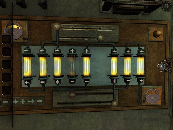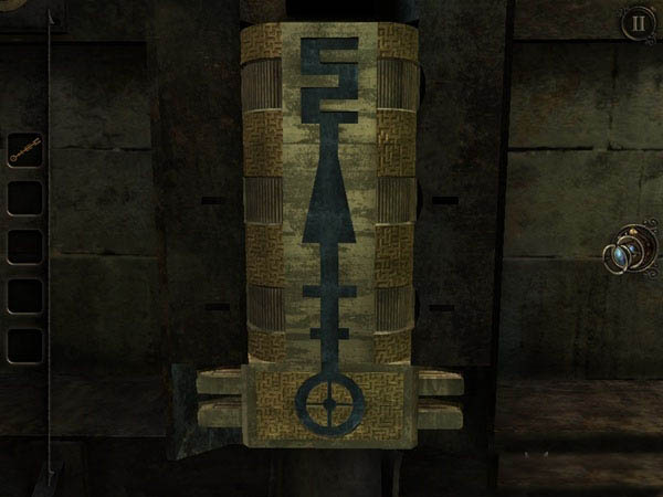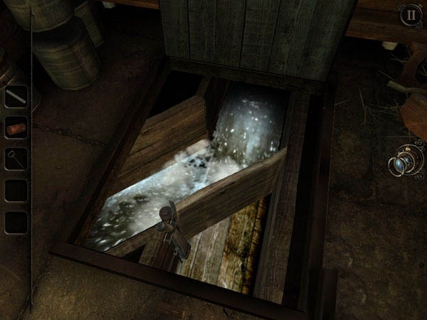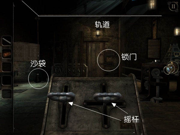 接着焦点便转移到一个灰色的遥控台上,在那里你可以拾取到一把钥匙,那是用来开启房子地板锁,以获取遥控台缺失的摇杆,并打开水闸引入活水转动水车。随后把找到的摇杆放置到遥控台上,便可控制一个悬挂在前方的沙袋。先让沙袋向左移动,在轨道的转折位放下沙袋,再提上拉前,又在转折位放下沙袋。在这两个动作之间,游戏会通过动画提示你此举动其实是在开启一扇门,每一次放下沙袋,你眼前的门都会开启部分锁门,直到你完成放置沙袋的全过程。