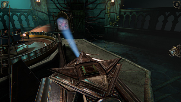 Part 1这次冒险又从投影机的房间回到水台上,一切谜题源于三棱体魔盒。与上次一样,将获得的新三棱体魔盒放置于白色三角形位置上,随后便会在泥水中冒出一个精致的机关盒子,就这样游戏的 Chapter 2 迎来第一道谜题。