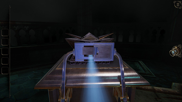 而另一个亮点,就是模型中还有模型,凡是模型小门外呈现碎片状的,都可以通过透视镜一窥究竟。而模型上有一个十分特别的建筑物,可呈现盒中盒的解谜模式。即你要通过进入几层空间,并且在每一层只挪动一个机关,当完成最里面的一层机关后,返回原路你会发现原本不在的零件却腾空出现了。这种虚实相交的视觉感受,是《未上锁的房间3》最特别的描述手法。