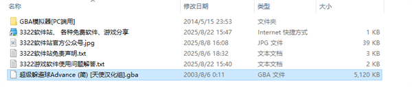 1、解压后,得到GBA模拟器,和超级躲避球游戏文件;