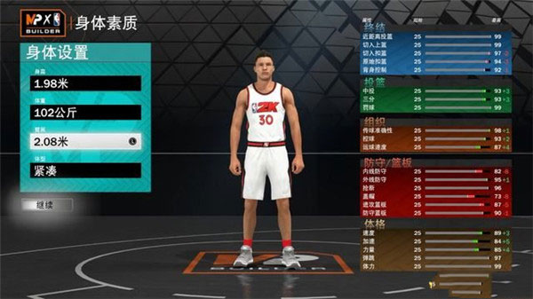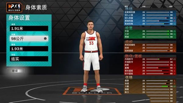 1、本作的建模菜单采用了《2K22 次世代》的建模方式,通过调整球员的身体数据以决定各项能力所能抵达的上限。