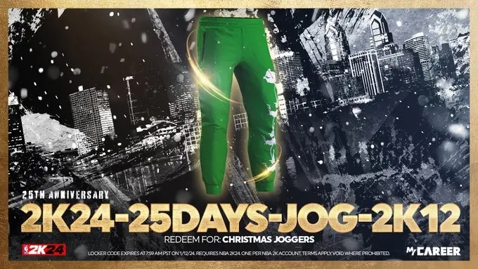 1、裤子可以通过代码进行兑换,代码是2K24-25DAYS-JOG-2K12。