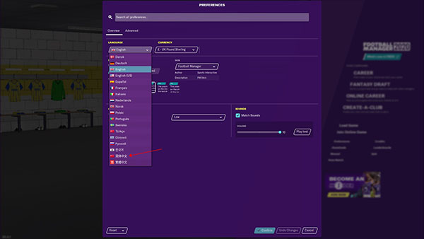 4、找到language选项,下滑找到简体中文,点击confirm,游戏就可以设置为中文了。