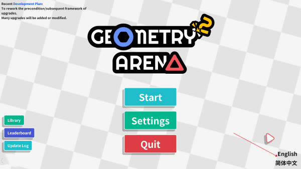 1、进入几何竞技场2游戏后,在右下角则可以切换语言,点击简体中文即可。