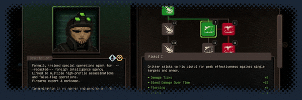 2、建立属于自己的小队,招募有各自特色技能树的佣兵。