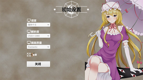 2、然后会有一个初始设置,我们选择简体中文,解析度和画面质量小伙伴可以根据自己电脑配置自主调整,注意最下面的是全屏选项